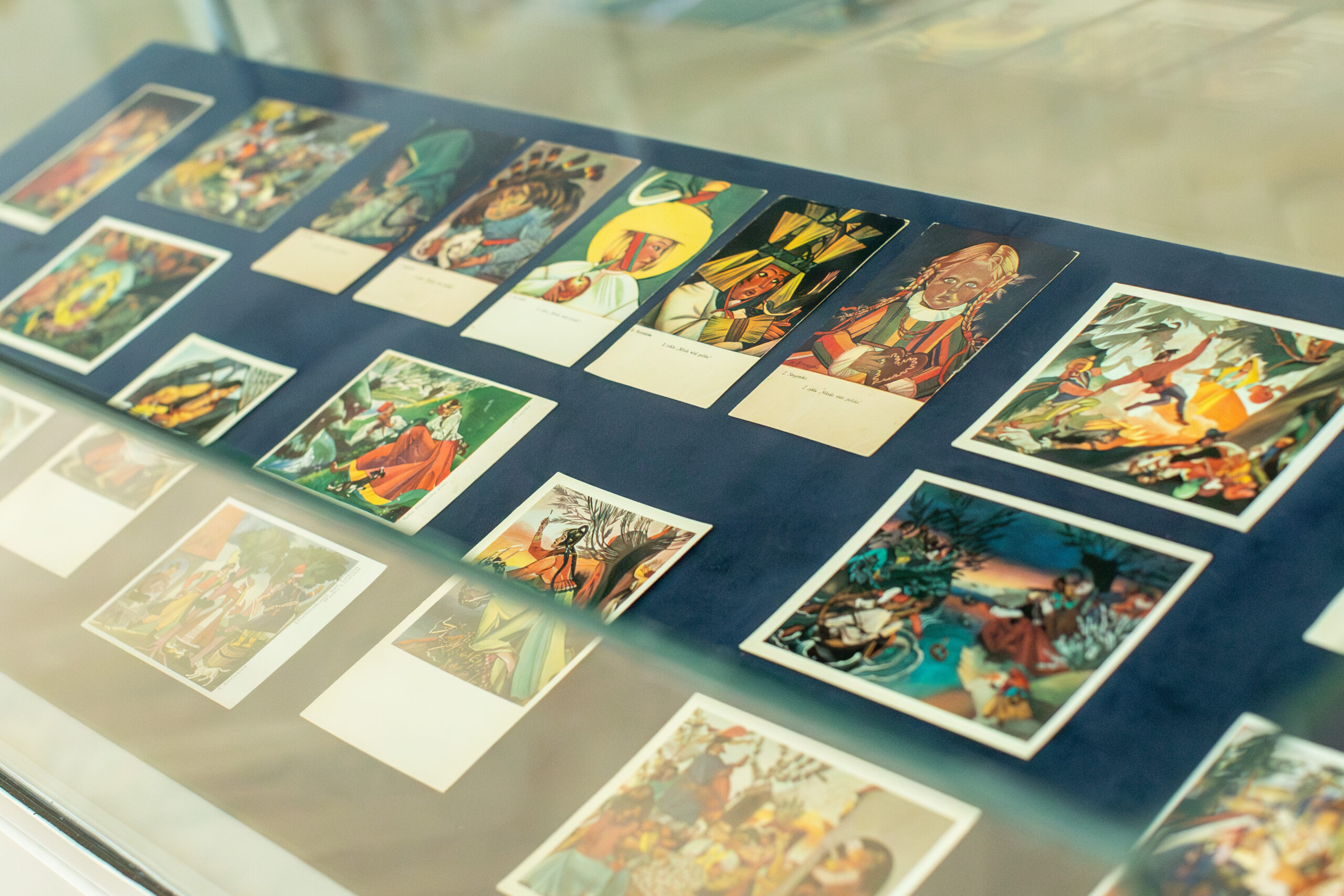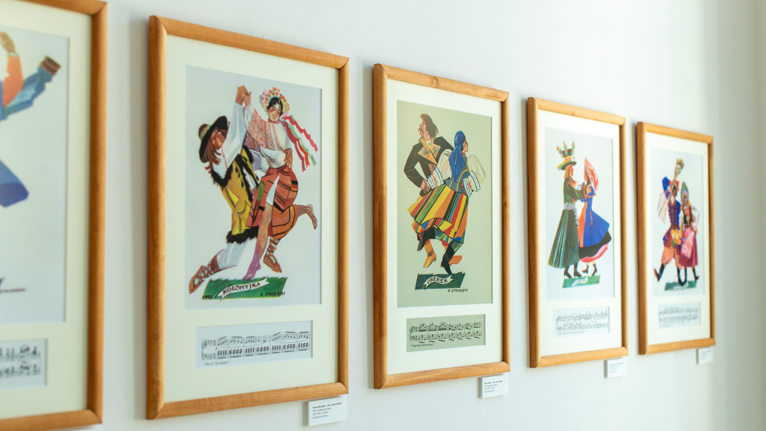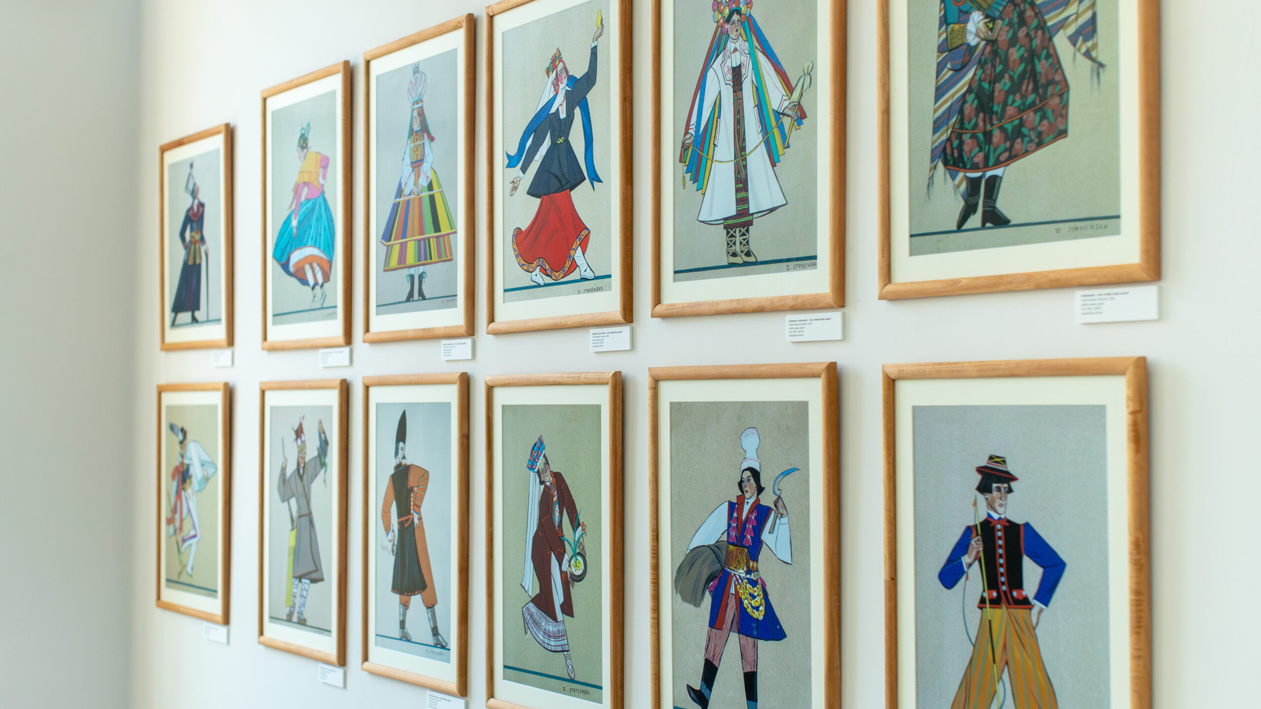 Prezentowana na wystawie twórczość Zofii Stryjeńskiej to reprodukcje cyfrowe plansz z albumów: „Tańce polskie” i „Polskie stroje ludowe” oraz pocztówek z reprodukcjami jej prac, a także przez nią projektowanych. Prace artystki zrodzone z fascynacji polską kulturą ludową są pełne barw, ekspresji i witalności. W pierwszych dniach trwania wystawy będzie można obejrzeć oryginalne albumy i pocztówki z pracami artystki.