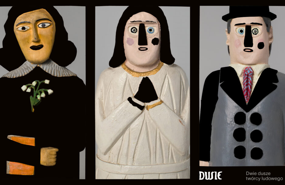 Dlaczego jednak zmiana stylu twórcy ludowego budzi niepokój i trzeba ją tłumaczyć metaforą „dwóch dusz”, podczas gdy stylistycznie i formalnie różnorodna twórczość Picassa oznacza jego rozwój artystyczny? Tak działa figura twórcy ludowego, którego „stylistyczny prymitywizm” jest „naturalnym” wynikiem warunków egzystencji, a nie wyborem artystycznym. Wytworzona w nowoczesnym polu sztuki figura to Inny artysty nowoczesnego, skrępowanego wyuczonymi konwencjami i podejmującego świadome wybory stylistyczne. Mit, który pobudzał wyobraźnię artystów awangardowych szybko jednak zaczął pękać w szwach w realiach materialnego wytwarzania sztuki ludowej. Wystawa prezentuje sztukę ludową jako skutek relacji społecznej, która była pod wieloma względami niesymetryczna, starając się równocześnie wskazywać na różne aspekty sprawczości twórców rzeczy nazywanych „ludowymi”.
