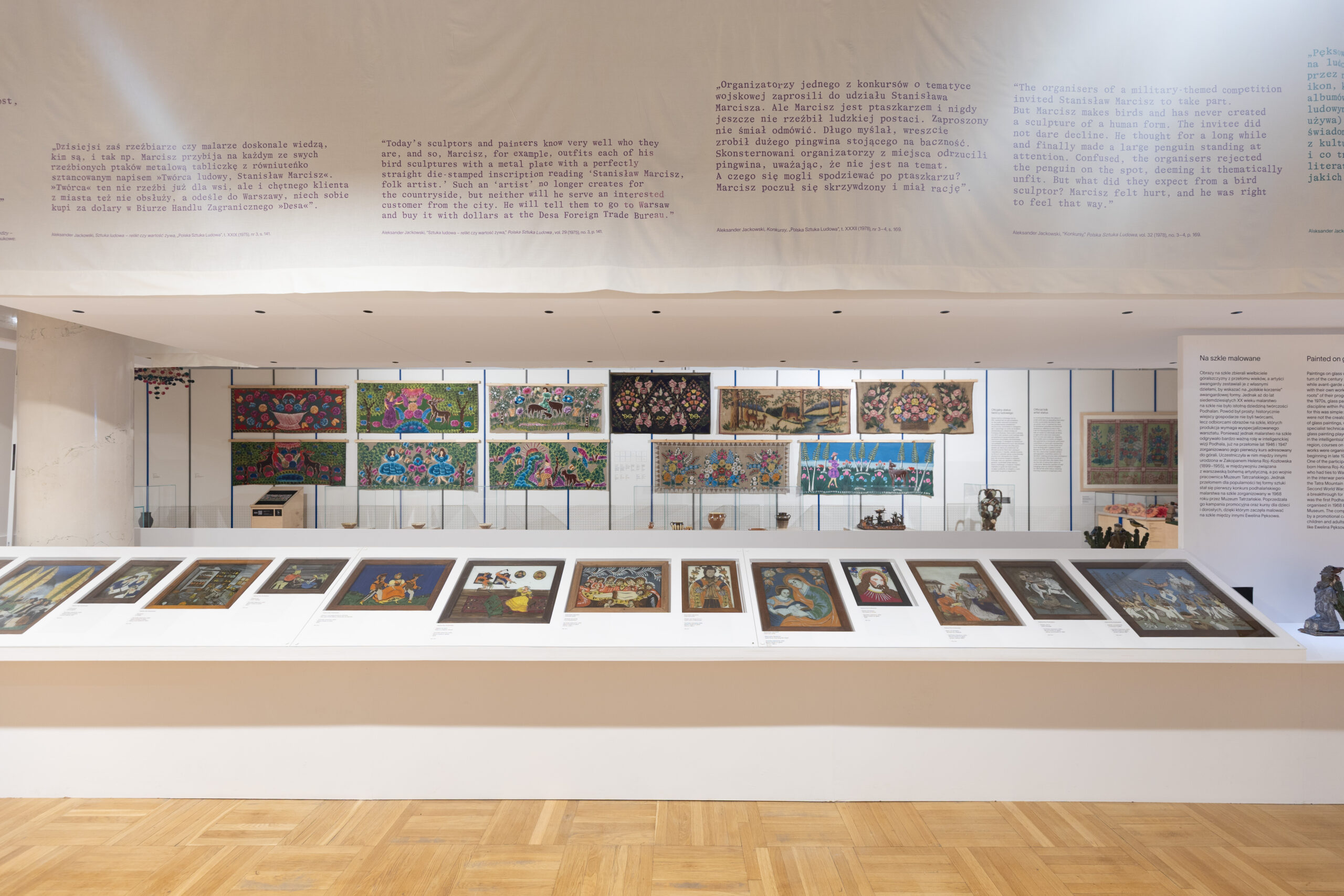 Wystawa wykorzystuje wyłącznie zbiory Państwowego Muzeum Etnograficznego. Oprócz dzieł znanych i publikowanych prezentuje obiekty nigdy dotąd nie prezentowane lub pokazywane rzadko. Pokaz obejmuje tkaniny, malowanki na papierze, wycinanki, malowane makatki, ceramikę, rzeźbę, malarstwo i drzeworyty, a także elementy strojów i obiekty o charakterze pamiątkarskim i dekoracyjnym. Wykorzystane też zostały materiały archiwalne i fotografie z archiwum PME